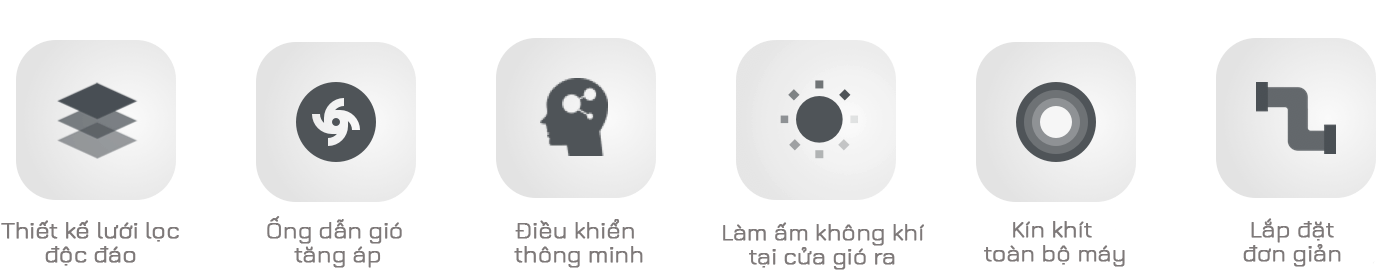 Quạt ly tâm hiệu suất cao, gió mạnh, tiết kiệm điện; lưu lượng gió điều chỉnh linh hoạt, vận hành êm ái