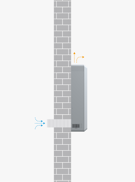 Supercharge purification technology creates a positive pressure indoor environment. No need to lay complex pipelines. Clean air is at your hand. Brings in new air, purifies air source at 5 times the efficiency of regular purifier, and solves the problem of excessive indoor CO2.