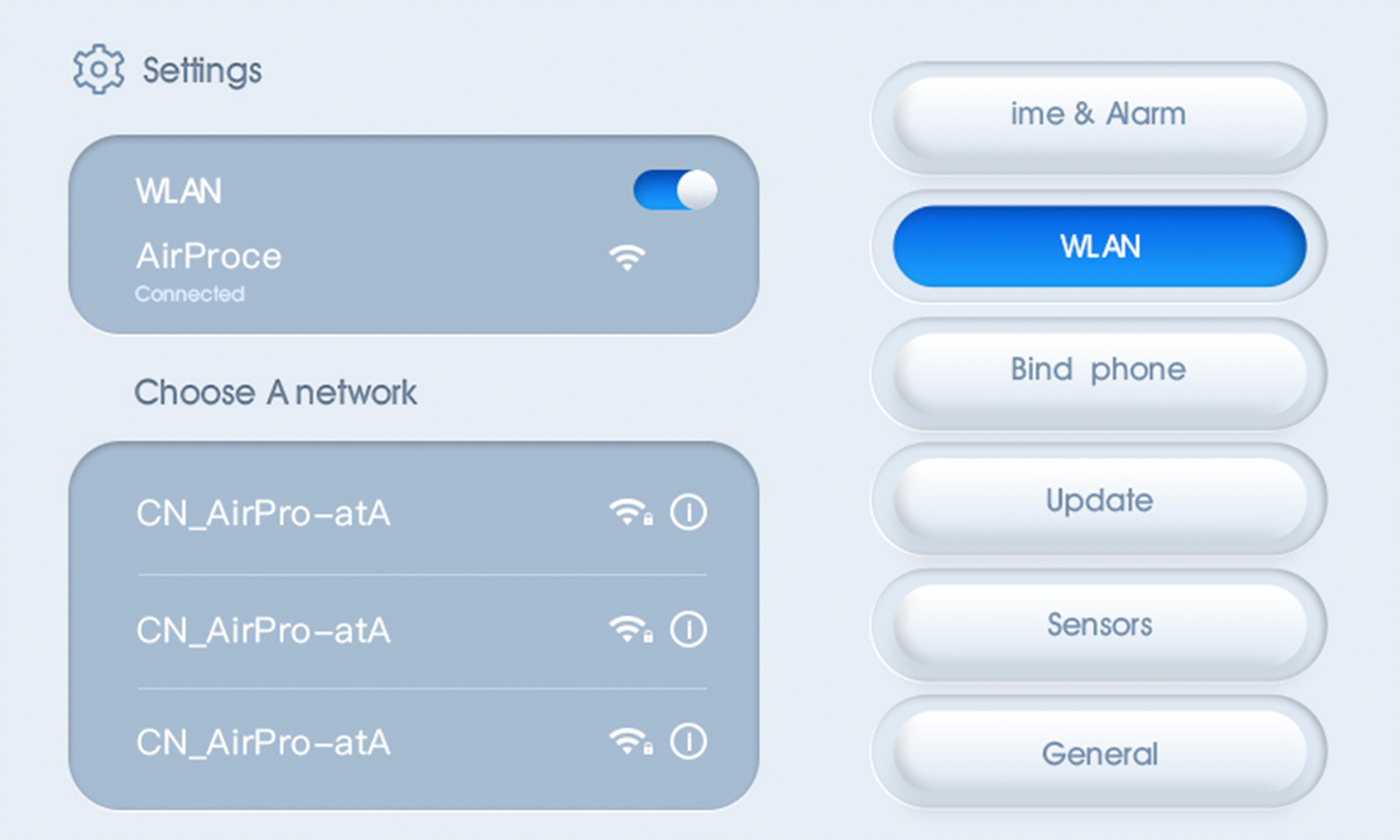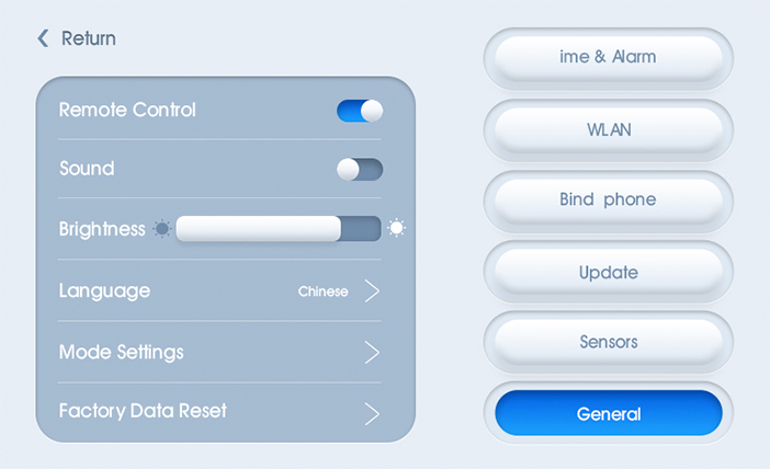 Purifier touch screen UI description