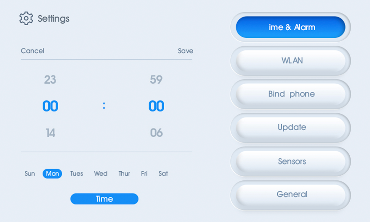 Slide right the homepage to the Settings page. Click time and timing.