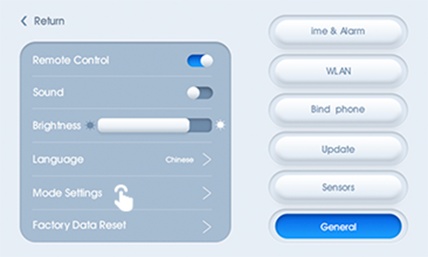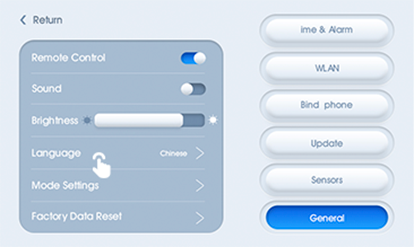 Connect to power: startup animation displayson screen while music sounds. after animation ends, enter the main interface.
