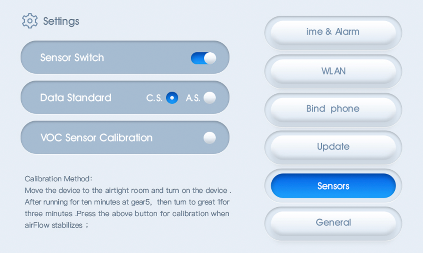 Slide right the homepage to the Settings page. Click sensor.
