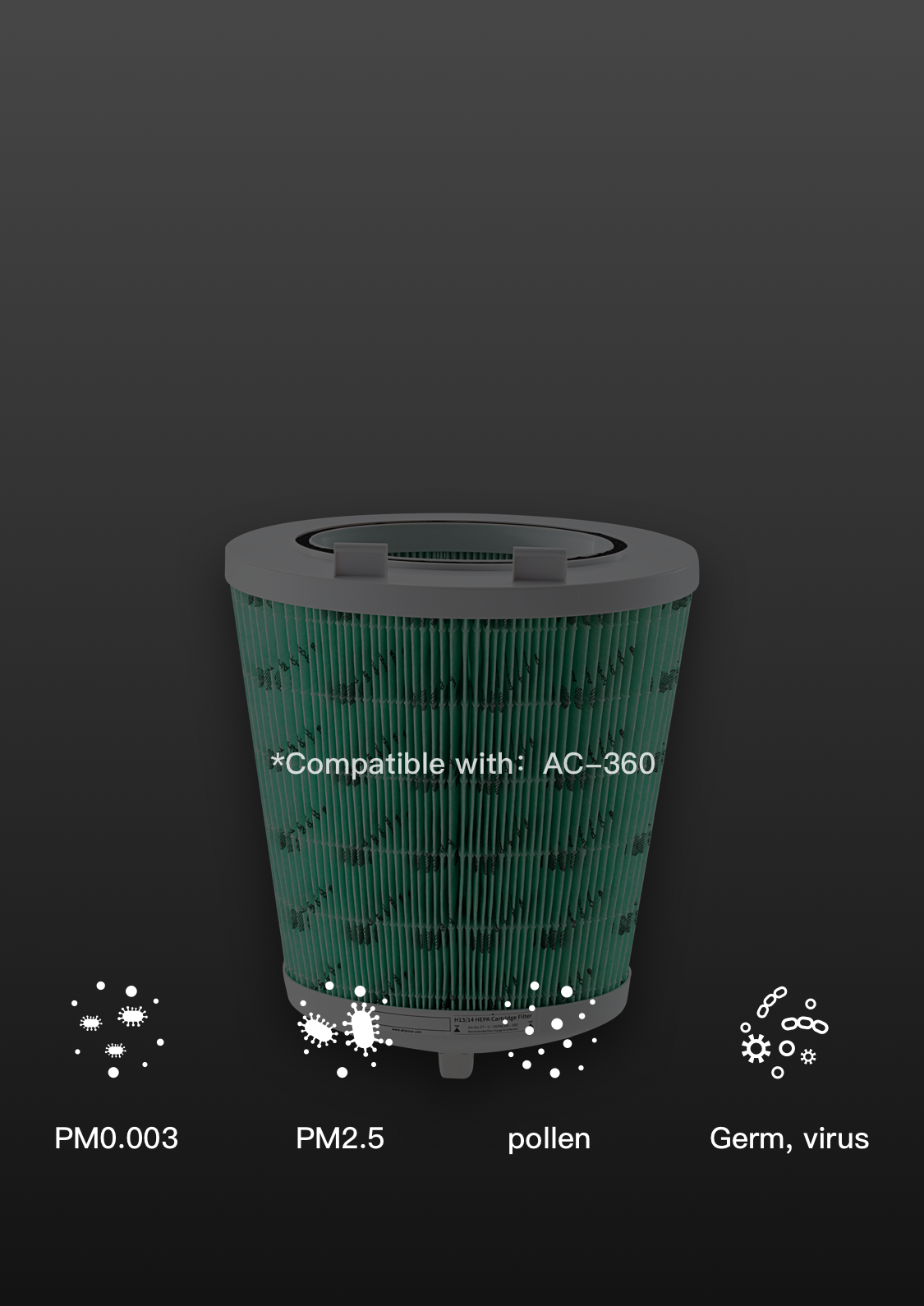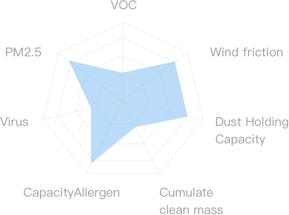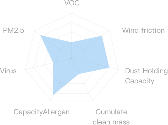Fine particles with diameters between 0.1μm~0.3μm are called the hardest particles to filter because of their inertia and inactive diffusion. Thus, PM0.3 filtering performance is the primary indicator when choosing filters and purifiers. We choose H13-level HEPA that has a 99.97% filter efficiency of PM0.3.