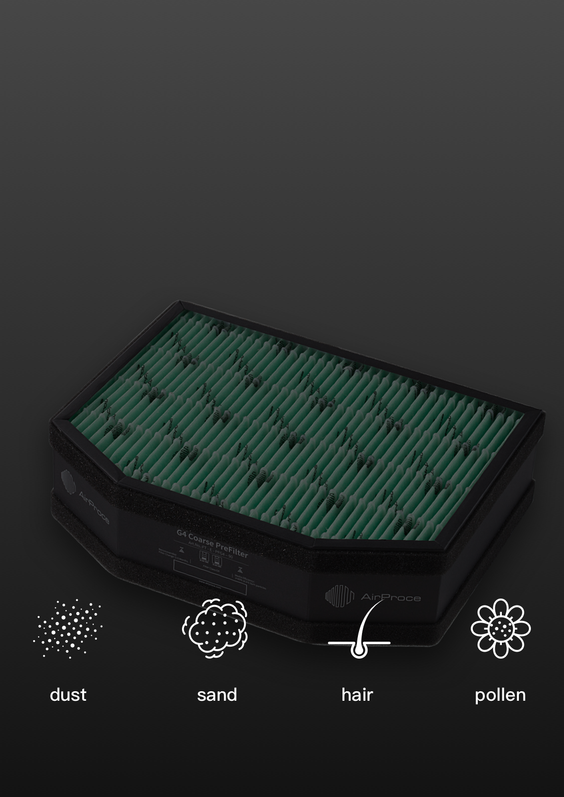 Handling of coarse dust, hair and pollen and other large particle pollutants.