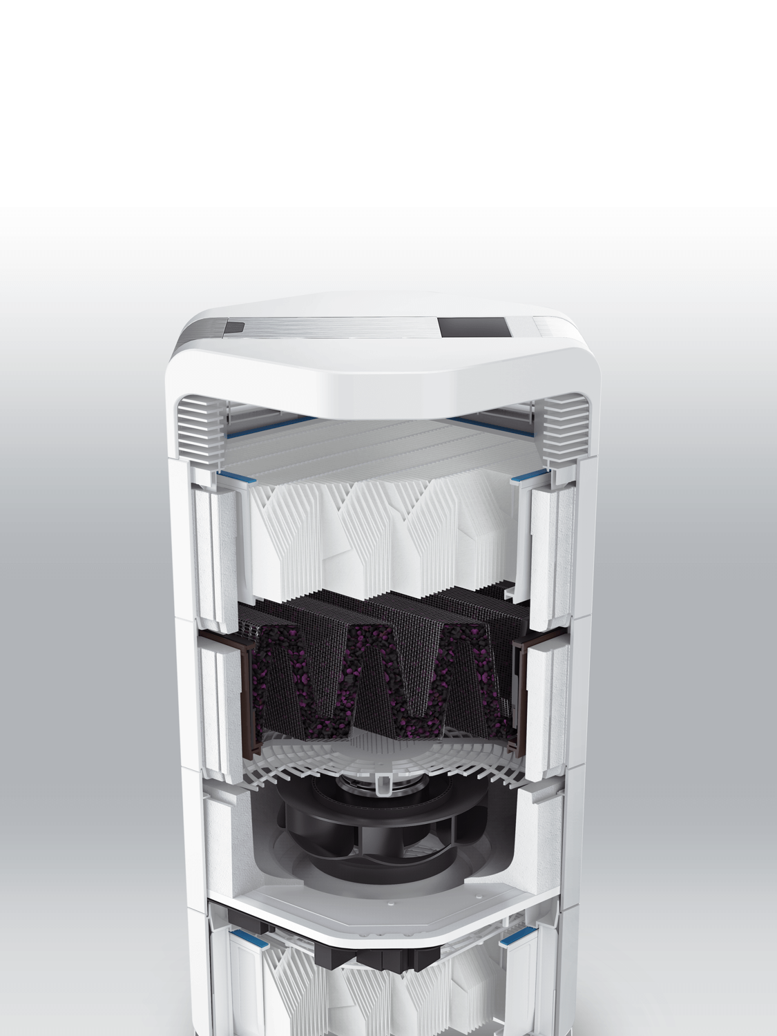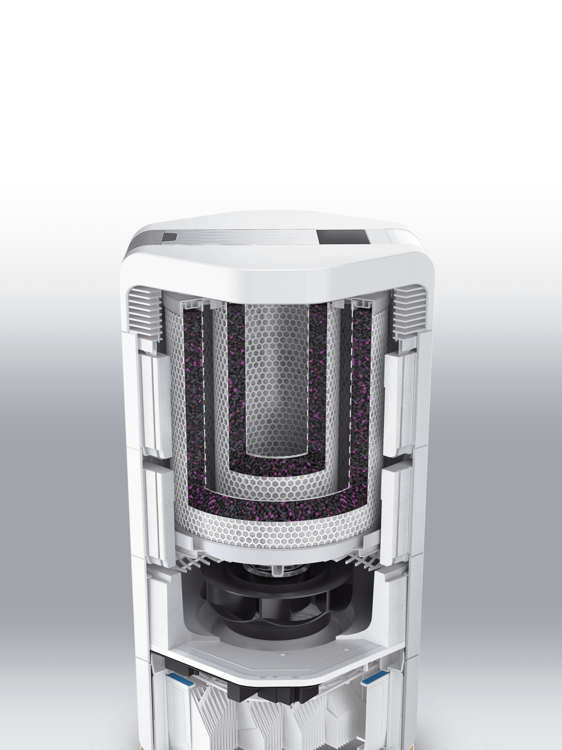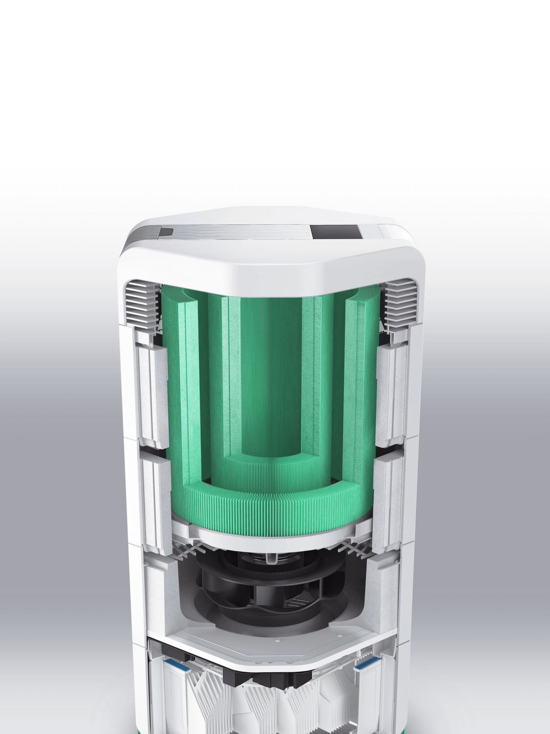 The water module with HydrClean™ technology is compatible with all AirProce AI product series, and solves the problem of simultaneous purification and humidification – balancing the air humidity while improving purification efficiency of particles and harmful gas.