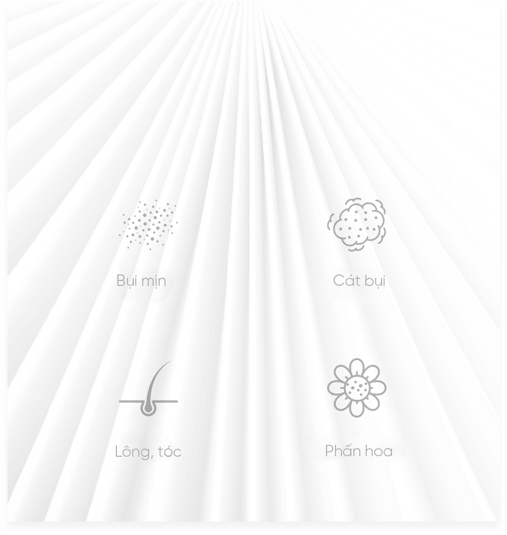 Với thiết kế tối ưu, màng lọc thô mới có độ dày tăng 50%, mang lại khả năng giữ bụi vượt trội và tuổi thọ kéo dài so với các dòng máy thông thường. Đây là lớp bảo vệ tiên phong giúp ngăn chặn triệt để các tác nhân ô nhiễm diện rộng như bụi bẩn, lông tóc và phấn hoa.