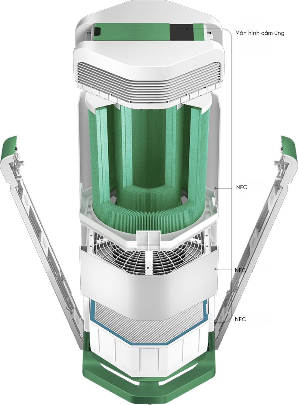 Mỗi màng lọc đều được tích hợp chip NFC giúp thiết bị tự động nhận diện và cập nhật thông số hiển thị trên màn hình.